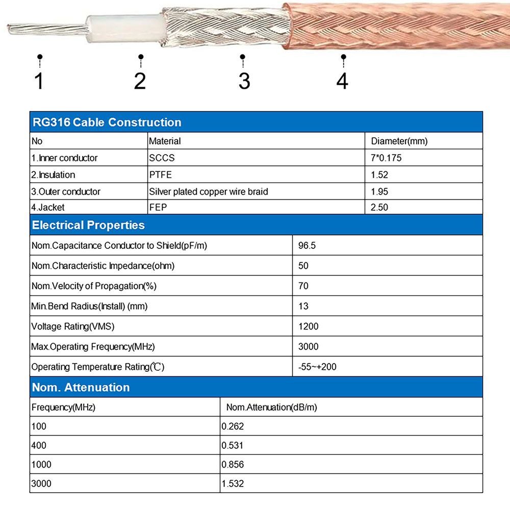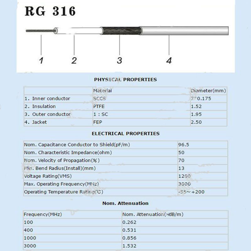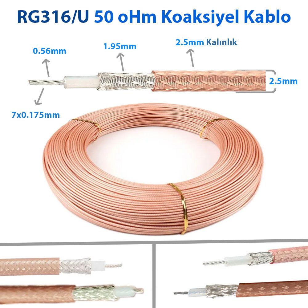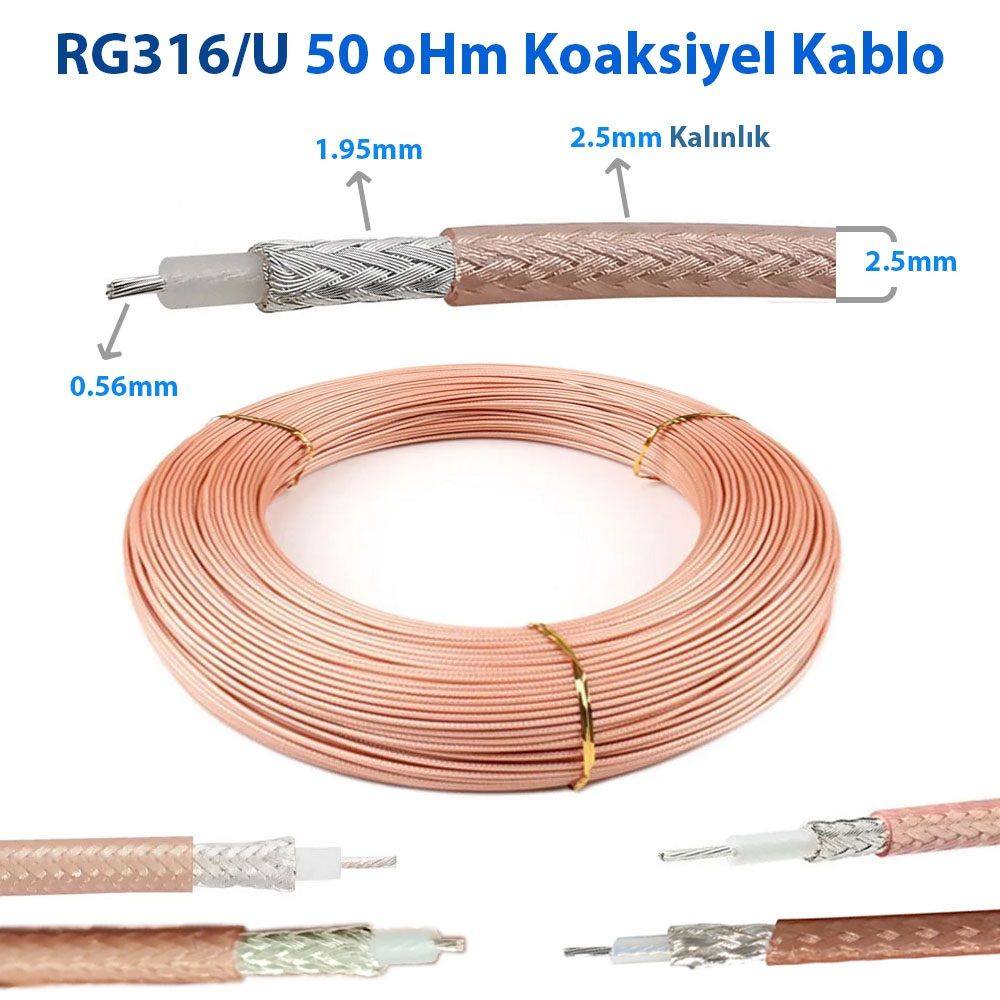 RG - 316/U 50 oHm Koaksiyel Kablo Düşük Kayıp Yüksek Mukavemetli Kablo.